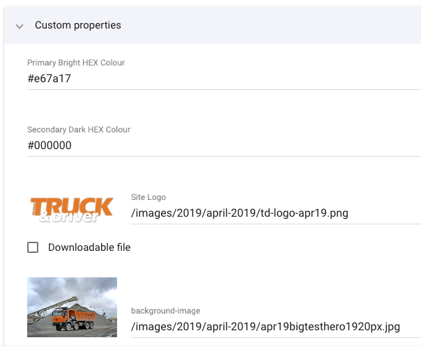 The site demonstrated here is updated every month by the client with a new colour theme to match their print publication. See http://www.nztruckanddriver.co.nz/ and select ‘Magazine’ dropdown from main menu to cycle through the multiple variations. Each month has unique css values populated via the webapp. Hope that helps.