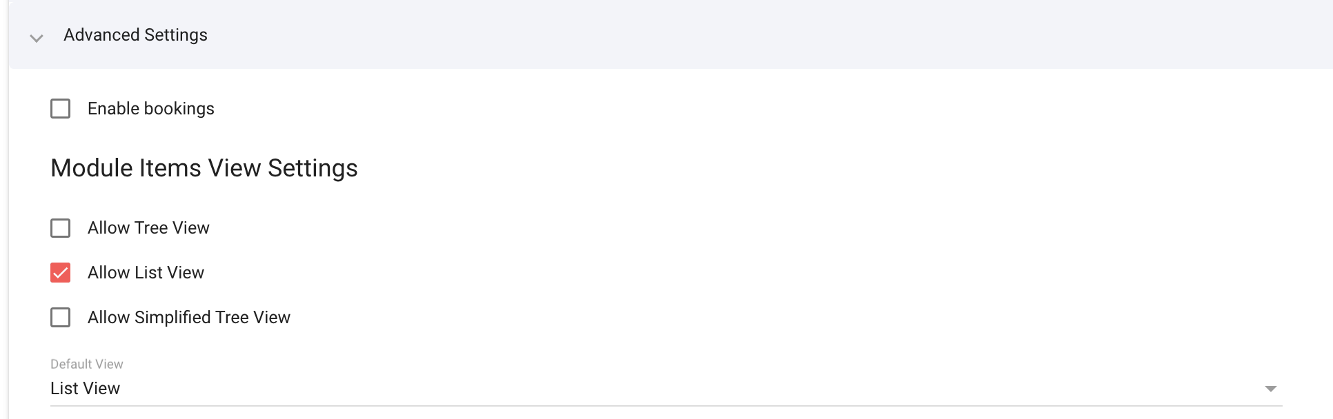 With this change, the Advanced Setting panel would only have bookings and view options.