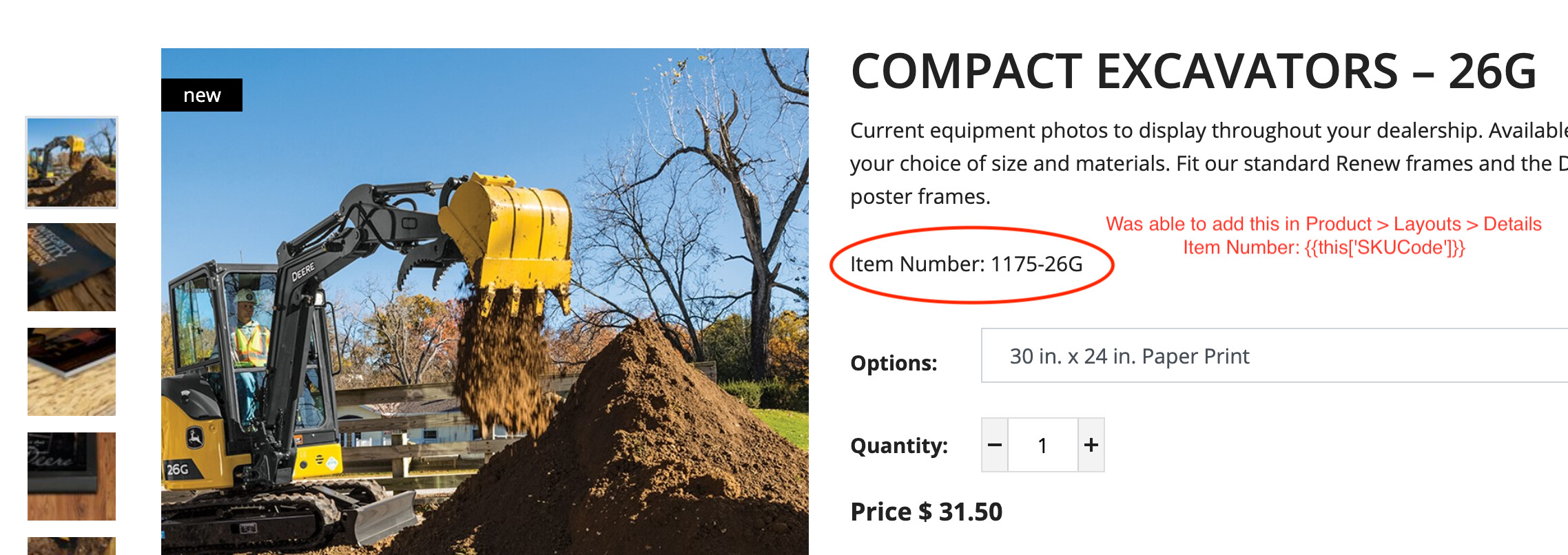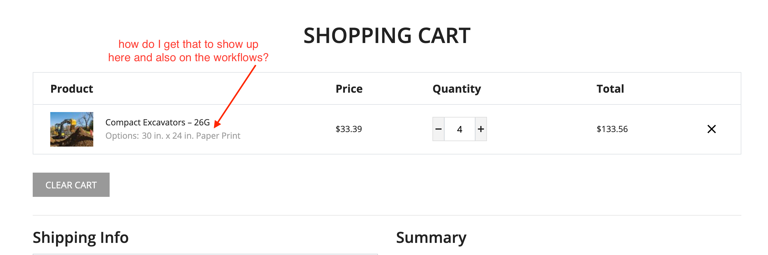 I need to customize the shopping cart and workflows to include the SKUCode from the product. (I’m using the Treepl Furniture template) Can anyone tell me how to do this? I’m in over my head. See attached pics.