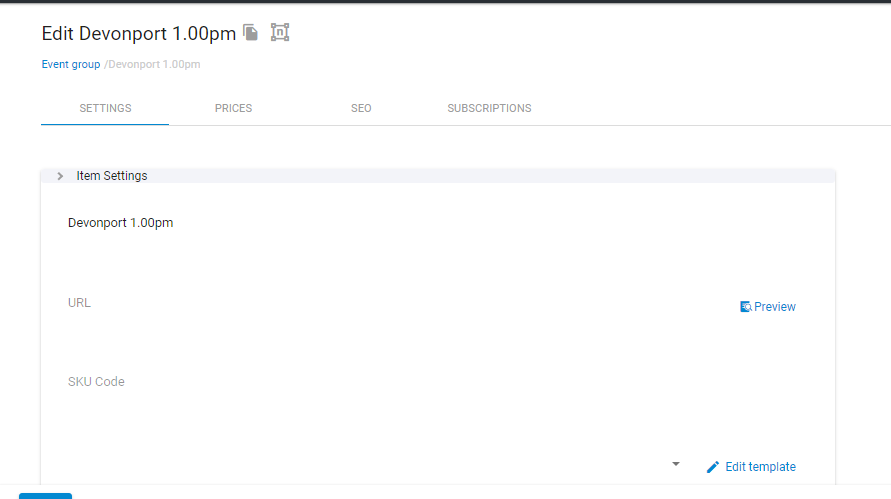 I can’t see any URL details or SKU code. Also the preview and template change links are not working.