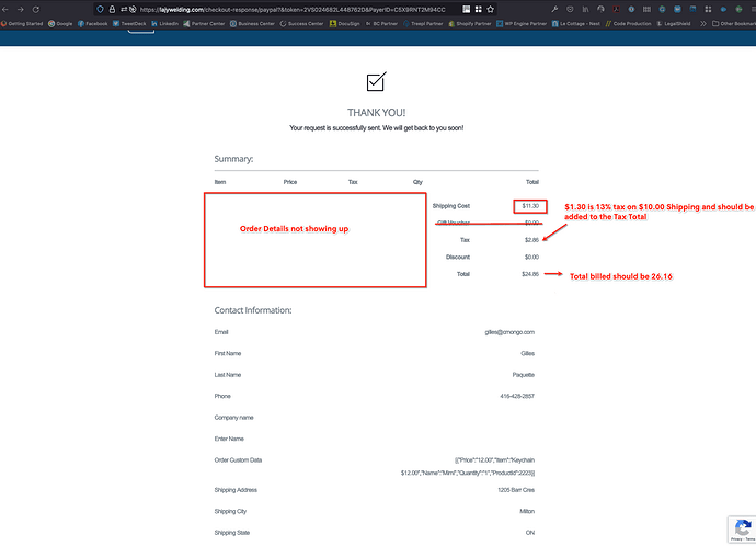 This Page should show totals just as in FIGURE 2 but the issue with the tax on shipping remains.