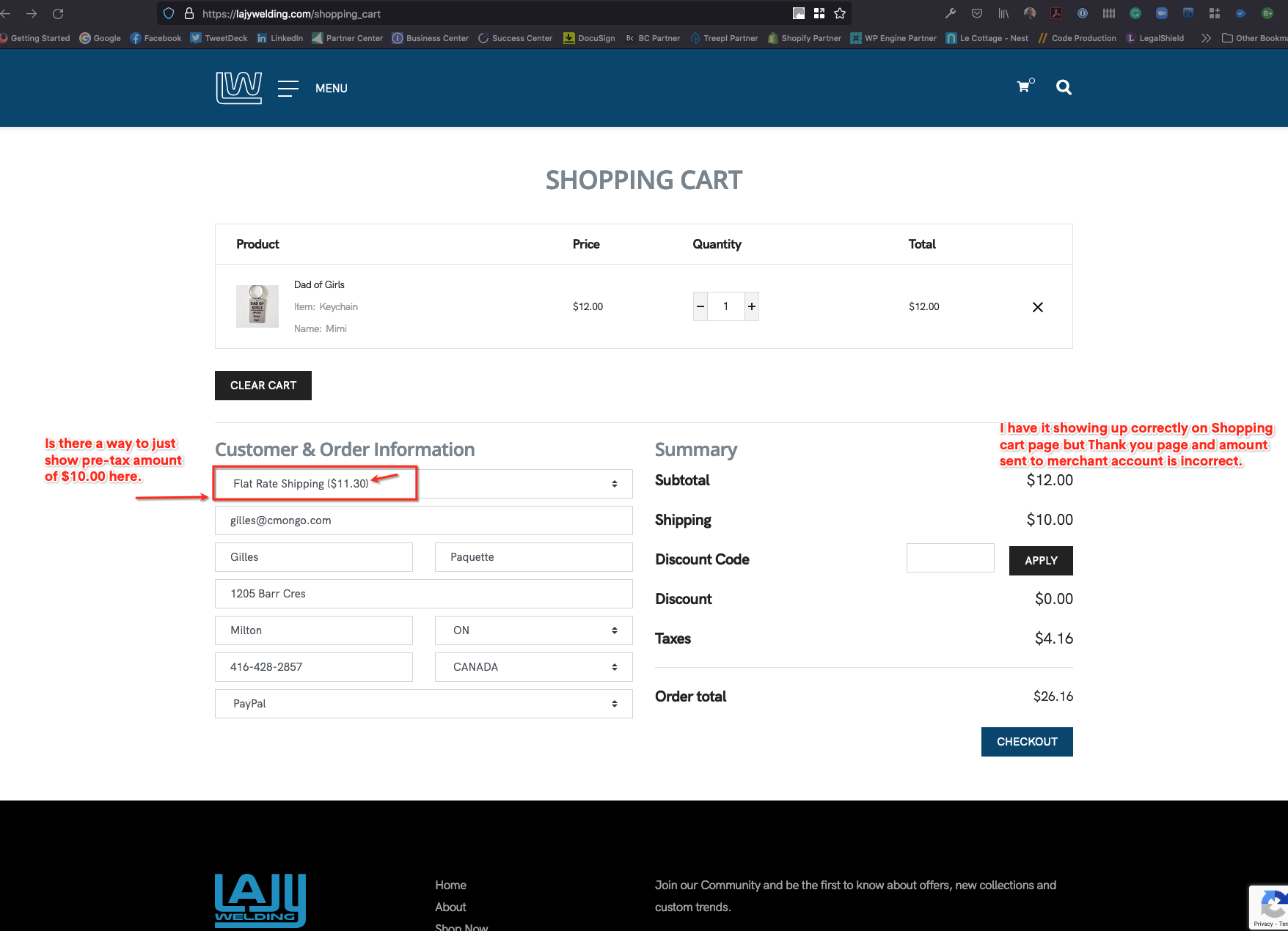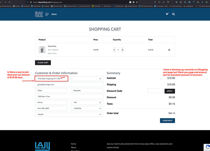 I seem to be having trouble getting the Shipping amount under the shipping choice dropdown to just show pre-tax and then have the proper tax flow through to both the Taxes Total and Total to follow through to the merchant account (in this case Paypal)