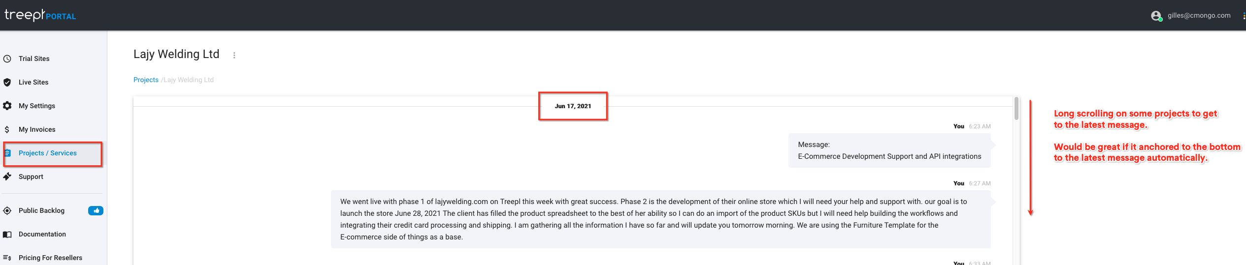 When a portal user clicks on a project to view an update or new message, it automatically starts at the beginning of the project. It would improve efficiency if it would automatically bring you to the latest post to the project.